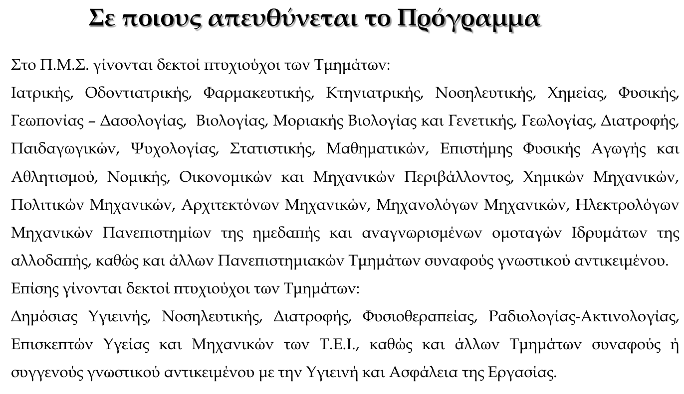 Το Πρόγραμμα Μεταπτυχιακών Σπουδών